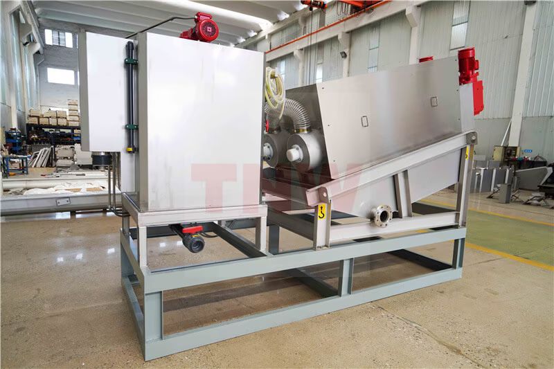 絮凝调质:添加阳离子PAM(投加量0.1%-0.3%),形成粒径>5mm的絮团,提升脱水效率。